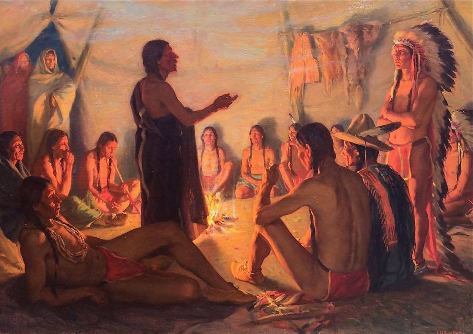 At age 22, Sharp went to Antwerp, Belgium where he studied with Charles Verlat, and two years later he began traveling the American West, going first on a sketching trip that included Santa Fe, places in California, and north to the Columbia River. He did numerous paintings of Indian figures to record their disappearing culture.